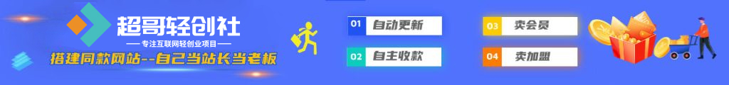 【超哥轻创社】可搭建同款网站+自己当站长+当老板+月入5万+
